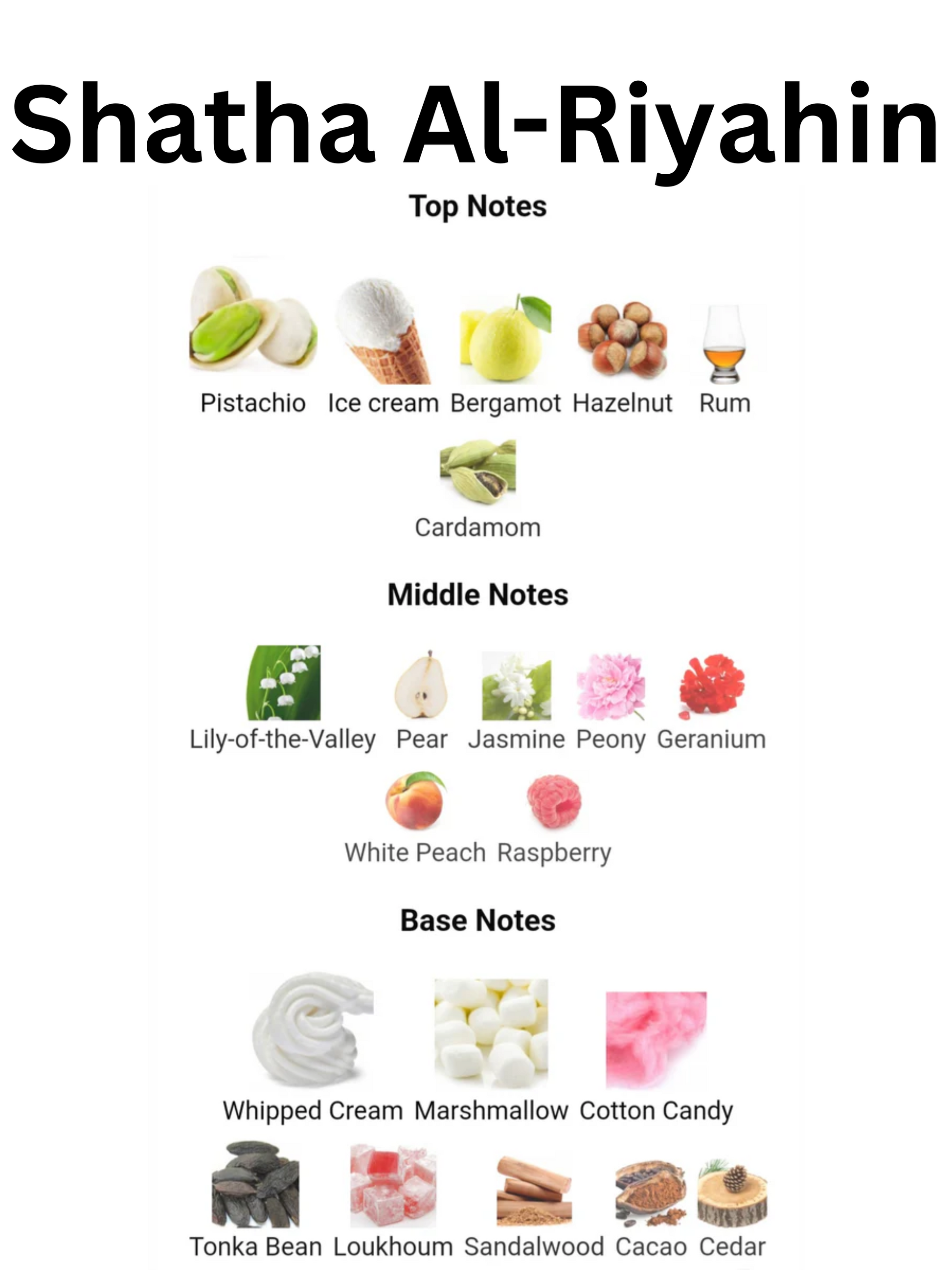 Top Notes are Pistachio, Ice cream, Bergamot, Hazelnut, Rum and Cardamom;