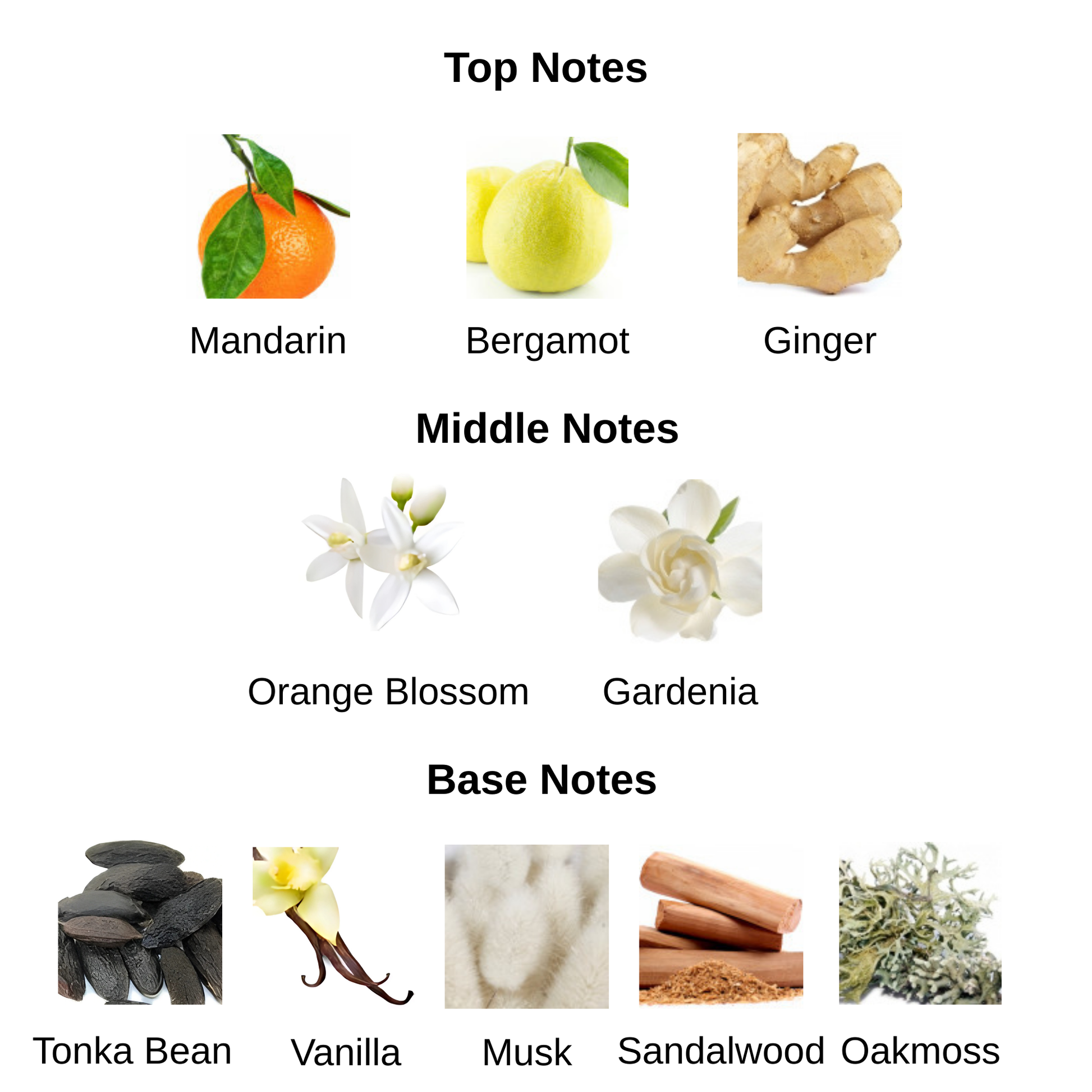 - Base Notes: Vanilla, Tonka Bean, Musk, Sandalwood, Oakmoss