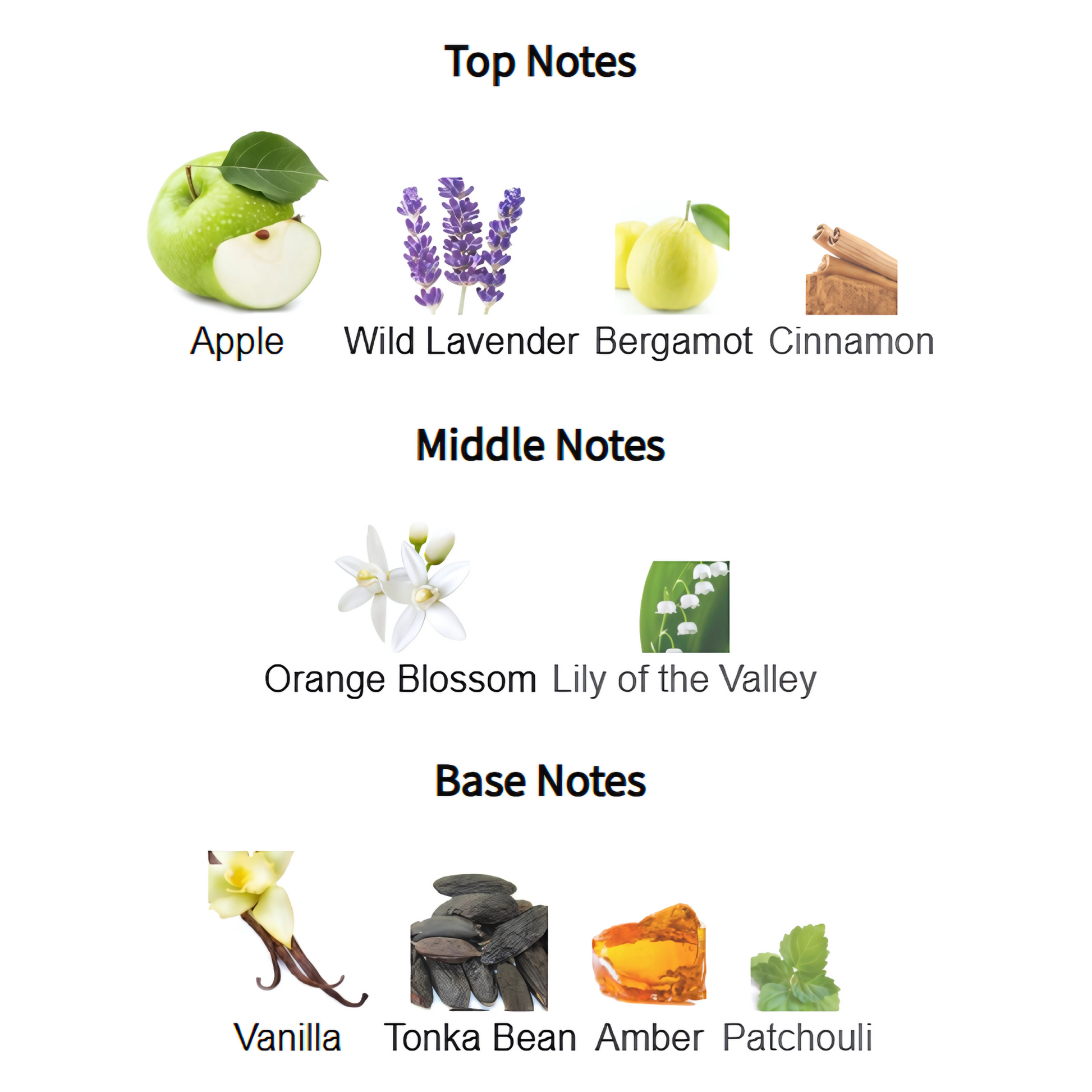 - Top Notes: Apple, Cinnamon, Wild Lavender, Bergamot