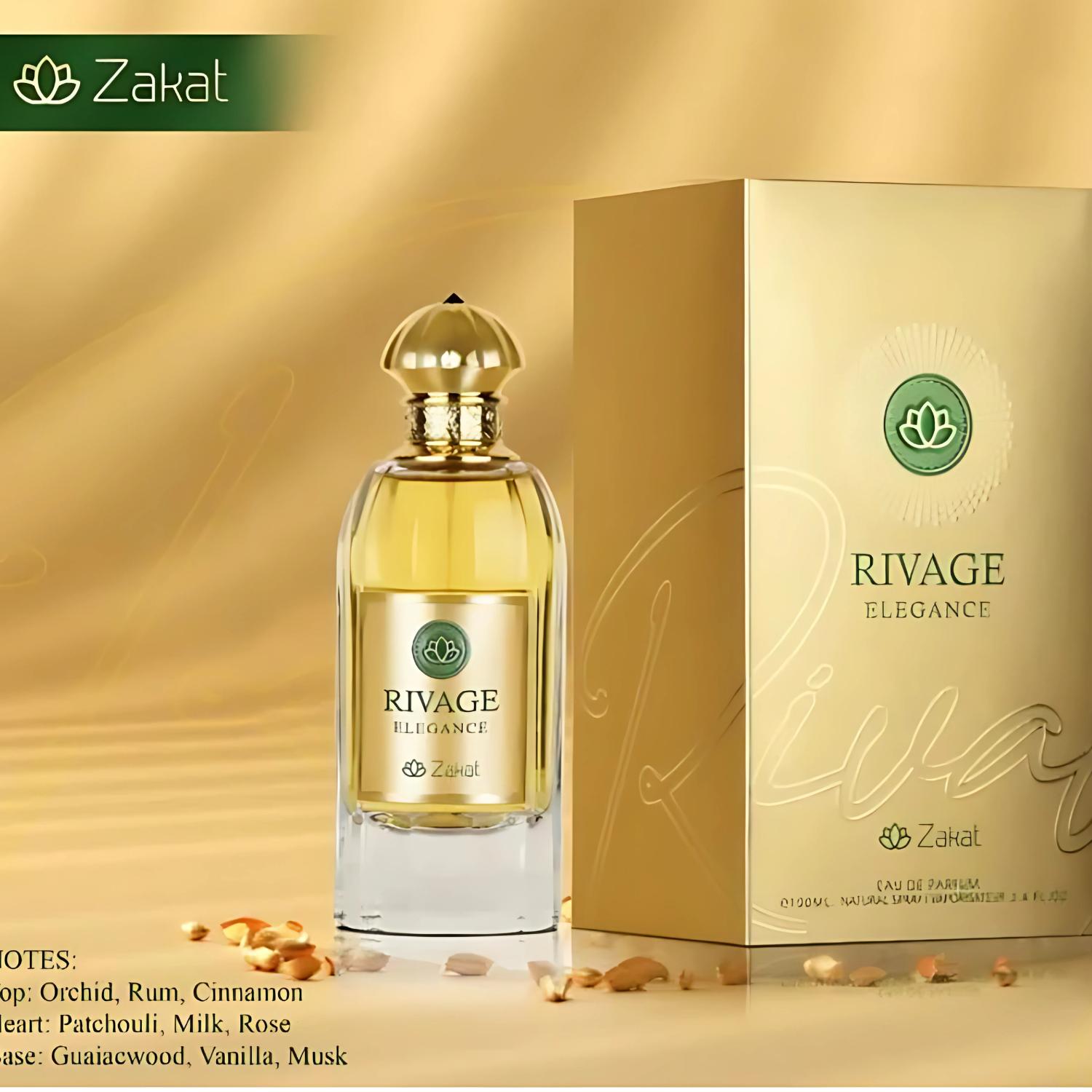 Zakat Rivage Elegance opens with the exotic and intoxicating aroma of orchid, evoking images of lush tropical gardens. The richness of rum and the warmth of cinnamon create a spicy and enticing allure, reminiscent of an elegant evening soirée. As the fragrance unfolds, patchouli adds a deep and earthy complexity, while the creamy sweetness of milk and the delicate scent of rose impart a sense of indulgence and opulence. Vanilla provides a warm and comforting base, enveloping the composition in a soft embrace, while musk adds a sensual and alluring finish.