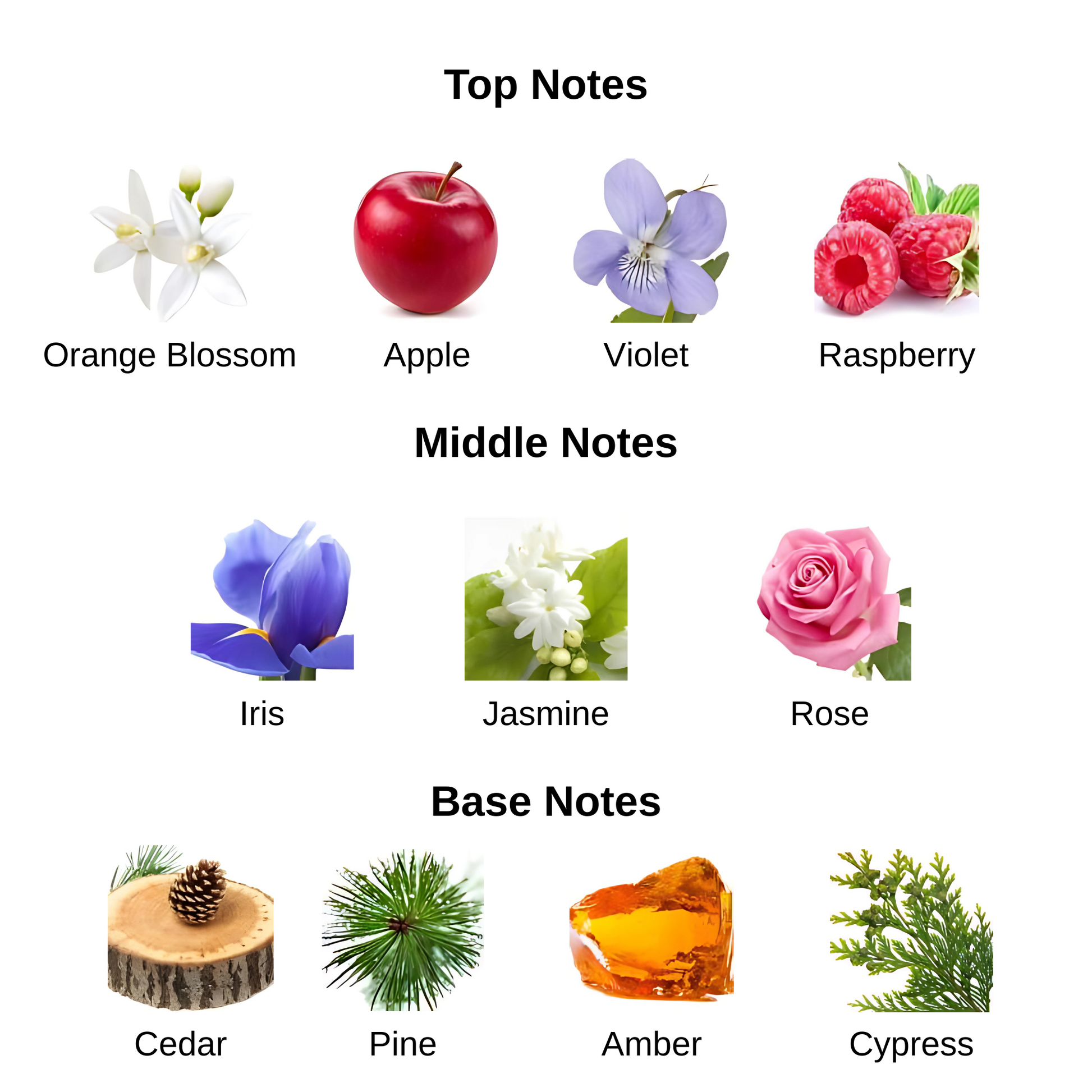 - Top Notes: Orange Blossom, Apple, Violet, Raspberry